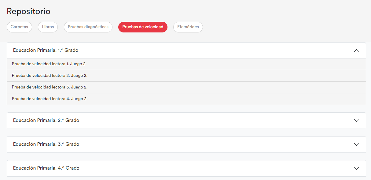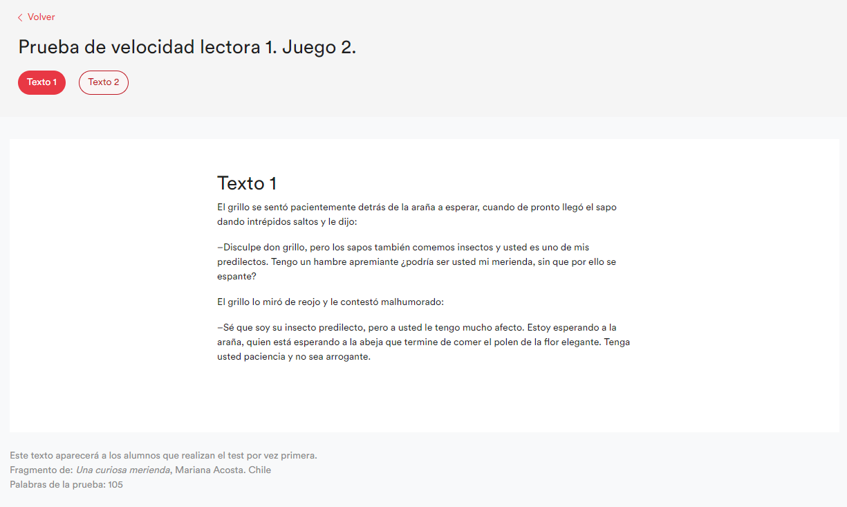 Sección con los test que registran el tiempo requerido por los alumnos para leer distintos textos, adecuados a su edad, que se les proponen en diferentes momentos del curso.