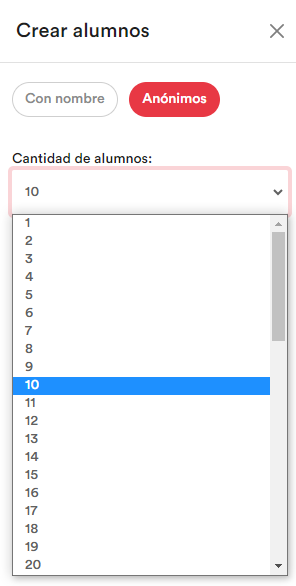 - - Si seleccionas Anónimos, deberás indicar el número de usuarios que quieras dar de alta en este grupo. Posteriormente, deberás editar el nombre y apellidos de cada alumno.