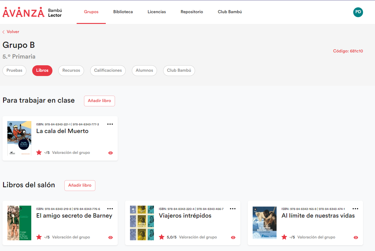 - Los libros se añadirán al grupo de forma automática. También podrás hacer visibles a tu alumnado todos los materiales complementarios asociados a la lectura.