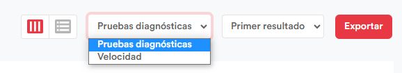 - Puedes ver las calificaciones en formato tabla o informe cambiando la visualización con los íconos correspondientes: